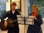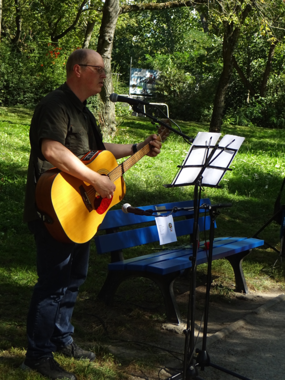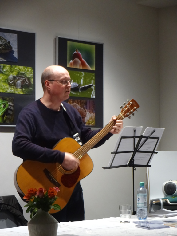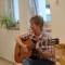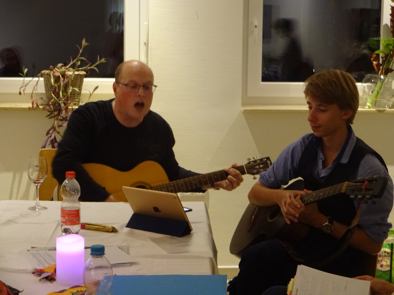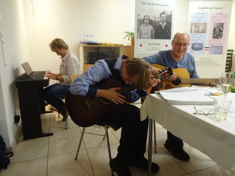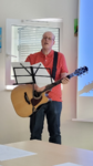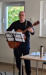 Matthias begleitet sie auf seiner Gitarre und singt selbstkomponierte Lieder