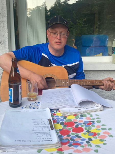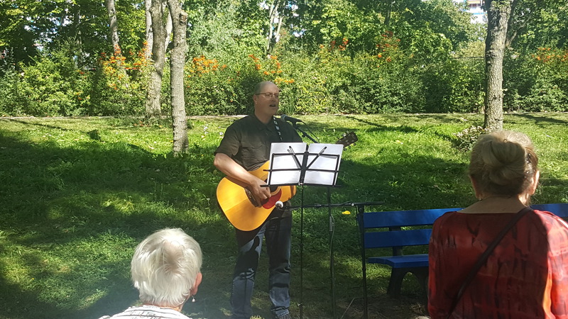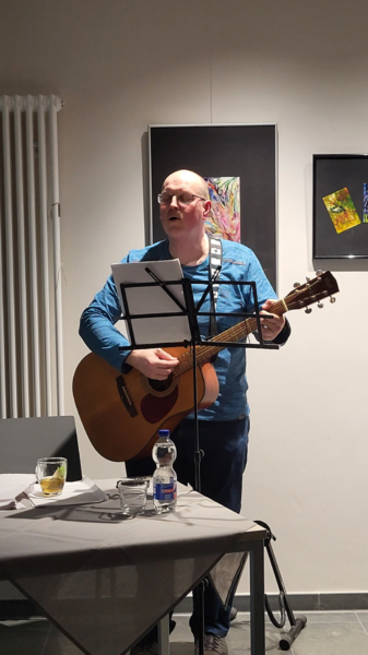 Matthias begleitet sie auf der Gitarre und singt dazu seine wunderbaren selbst komponierten Lieder.