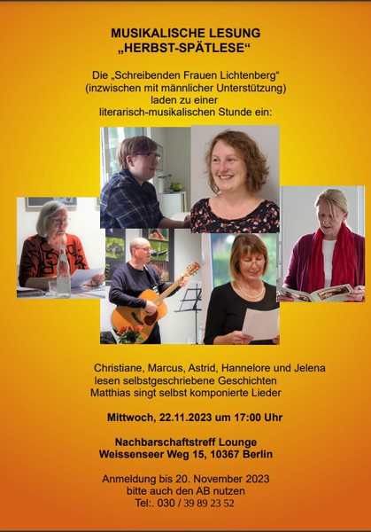 22.11.2023 Musikalische Lesung zum Thema "Herbst-Spätlese"