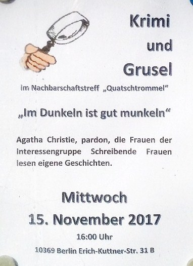 Oktober 2015: Schreibende Frauen treffen Freunde im Nachbarschaftstreff Rudolf-Seiffert-Str. 31B, 10369 Berlin